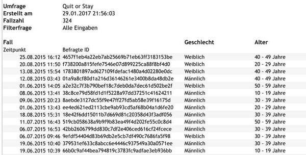 Hier ein Ausschnitt unsere Tutorial-Umfrage "Quit or Stay" ohne die "Kompakt"-Option: