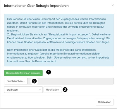 Es ist möglich, die Codes um weitere Informationen über die Befragten zu ergänzen. Unter "Informationen über Befragte importieren" (4) öffnet sich hierzu folgender Dialog: