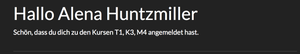 Auf die Nutzerinformationen können Abhängigkeiten gesetzt werden. Zum Beispiel sollten Besucher einer Veranstaltung im Vorfeld zu ihren angemeldeten Vorträgen befragt werden. Über eine Abhängigkeit auf die gebuchten Kurse kann nun z.B, die Frage zum Kurs "T1" nur anzeigt werden, wenn der Befragte diesen Kurs auch gewählt hat: