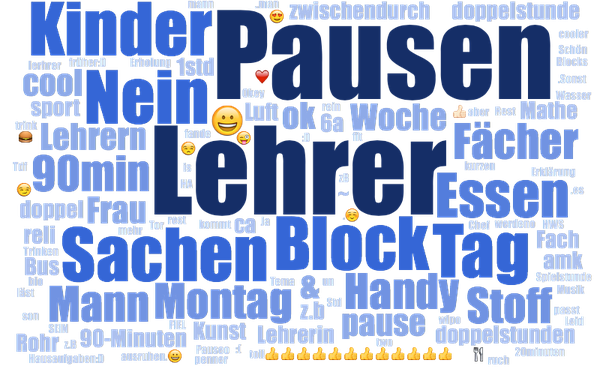 Eine erste Annäherung zur quantitativen Auswertung ist die "Word-Cloud". In einer Word-Cloud richtet sich die Größe der Wörter nach der Anzahl ihrer Nennungen. Das gibt häufig einen guten ersten Eindruck von der Stimmung oder Grundrichtung eines freien Eingabefeldes: