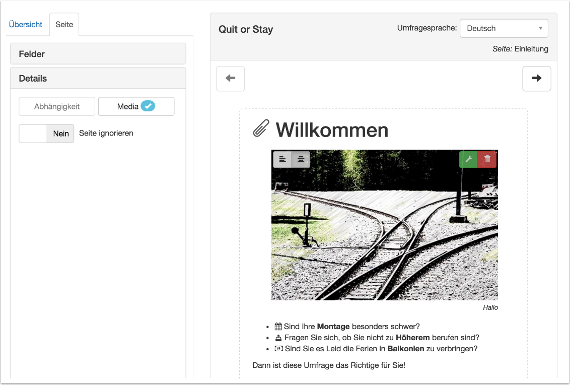 | 4 | Soll die Umfrage eine Startseite mit einleitenden Erläuterungen haben? |