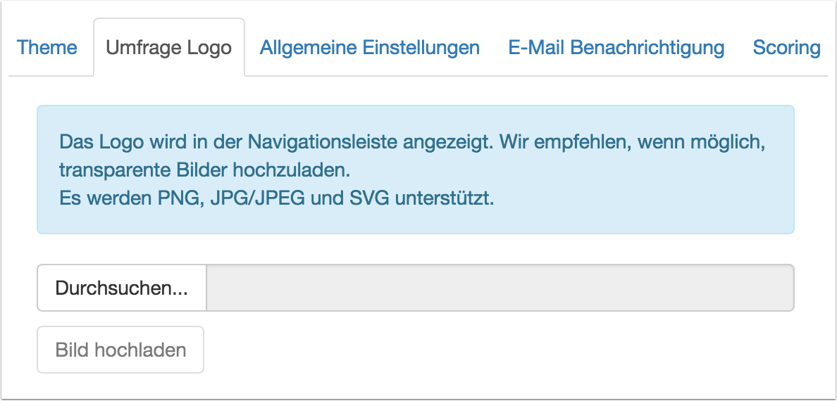 | 4 | Einstellungen | Hier werden allgemeine Umfrageeinstellungen wie Theme, Logo, E-Mailbenachrichtigung etc, eingestellt. |
